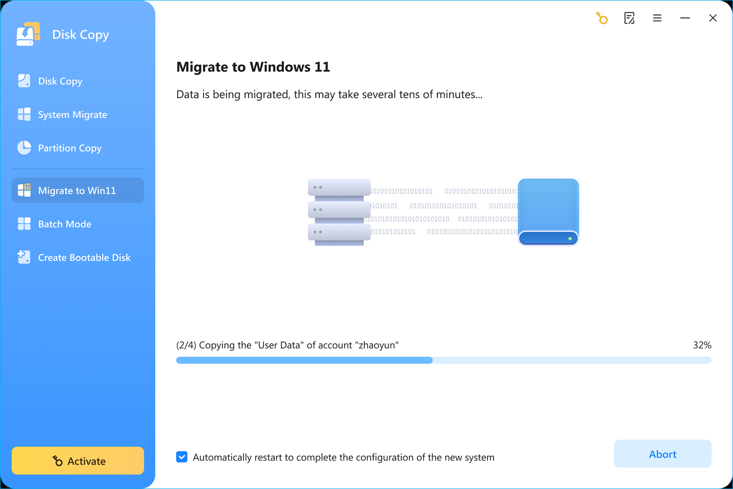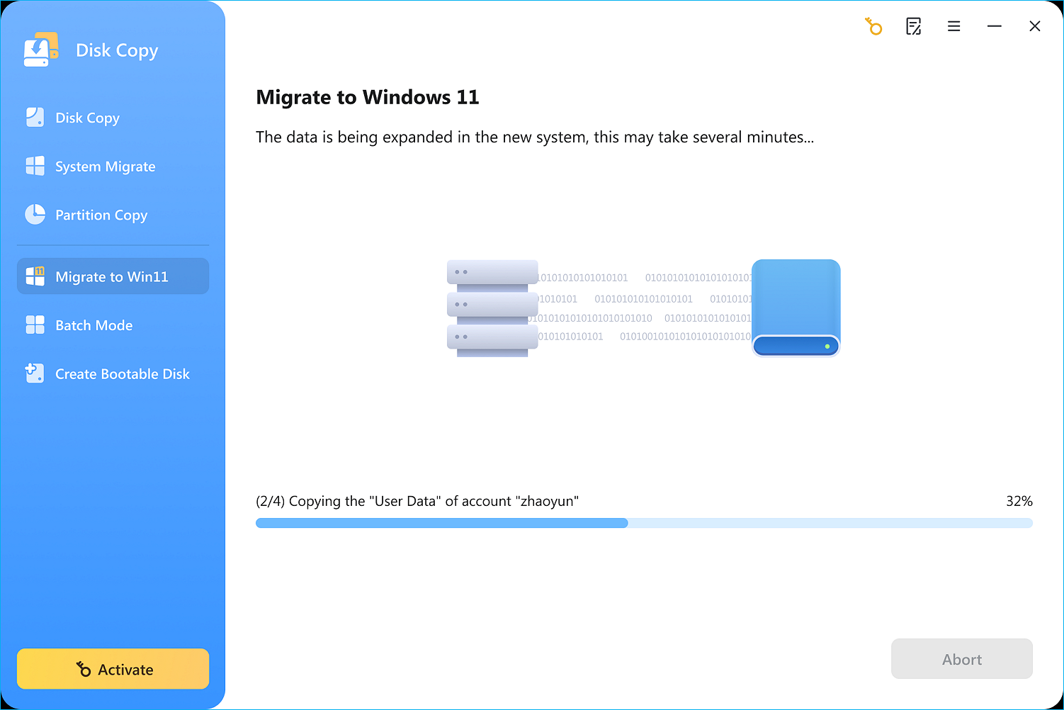 Krok 2. Funkcja Disk Copy rozpocznie pobieranie systemu Windows 11 i migrację danych na dysk docelowy.