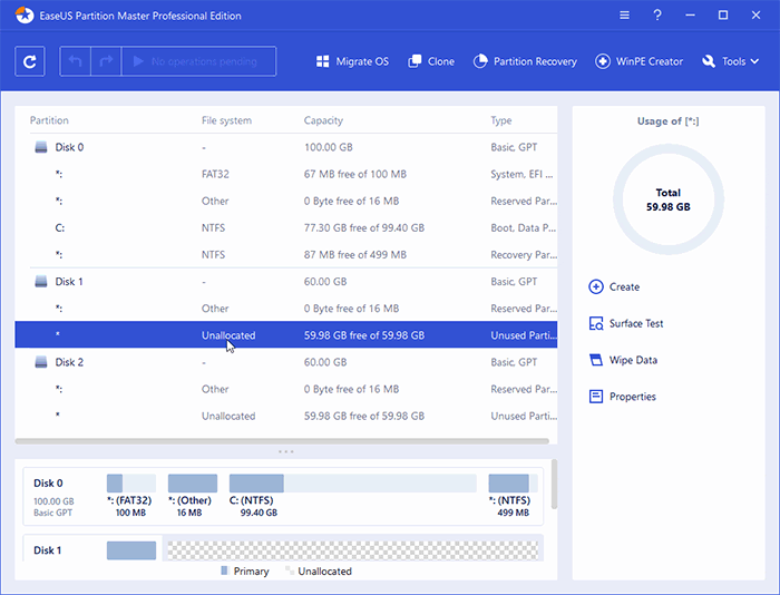 Partition Master Free Edition jest przeznaczony dla użytkowników domowych i oferuje trzy potężne i precyzyjne narzędzia: Menedżer partycji, Kreator odzyskiwania partycji oraz Kopia dysku i partycji.