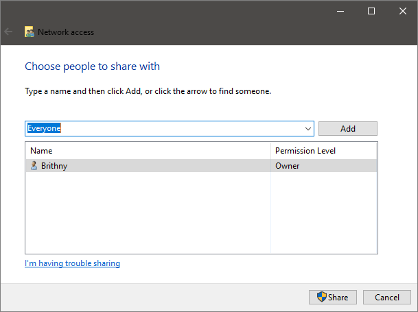 Krok 2. Wybierz użytkownika lub grupę do dodania. Kliknij „Dodaj”. Dodaj nazwę użytkownika, której chcesz go udostępnić. Jeśli chcesz go udostępnić wszystkim, musisz zaznaczyć opcję dla „Wszystkich użytkowników”, a następnie dostosuj poziom uprawnień zgodnie z potrzebami.