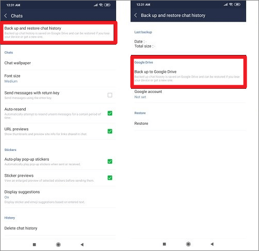- Przejdź do kopii zapasowej historii czatów.
